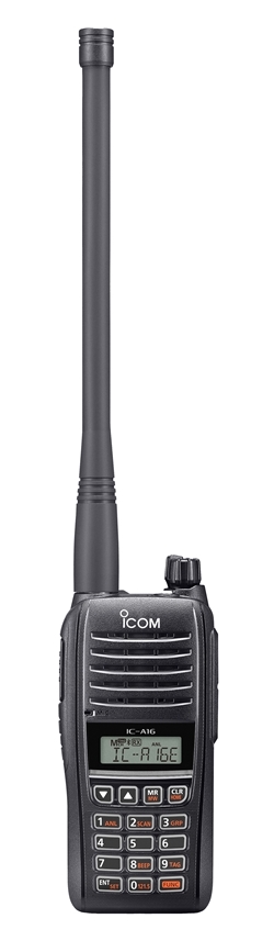 The IC-A16E 8.33/25 kHz ground to air support radio complements Icoms growing 8.33kHz range of Airband radios. The IC-A16E air band transceiver has been specifically designed for airside ground crew who provide aviation support.